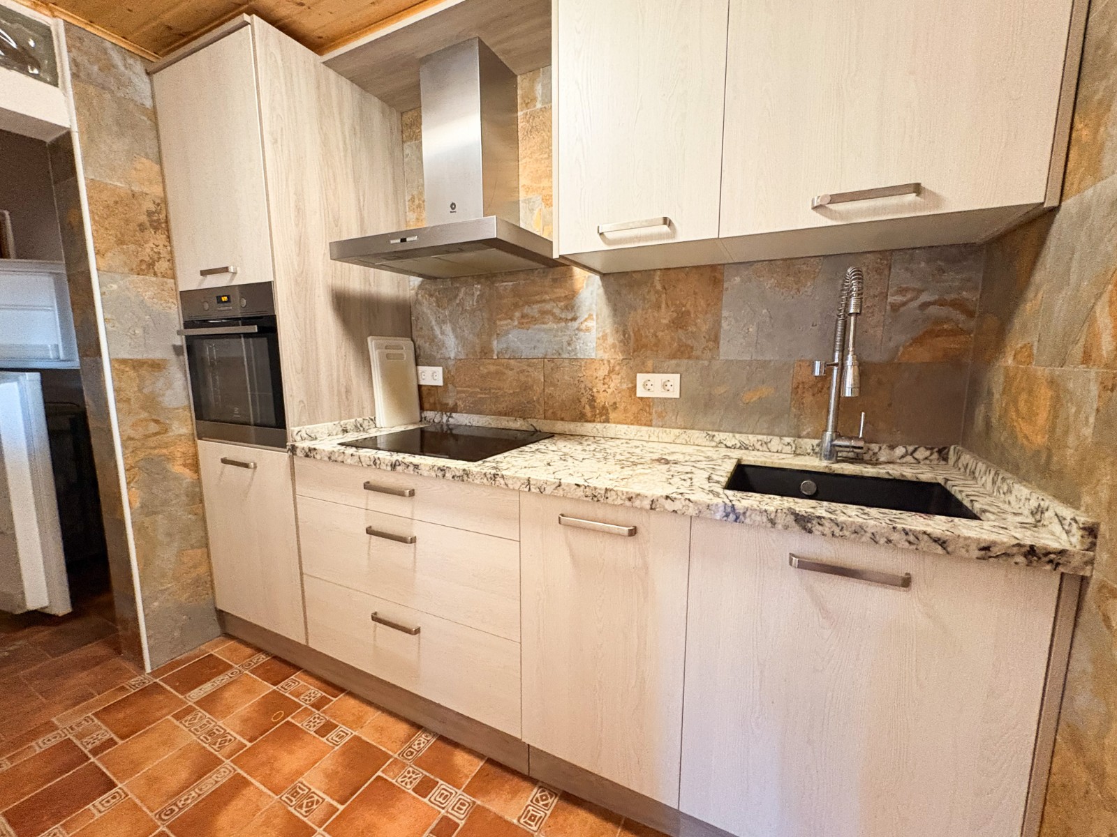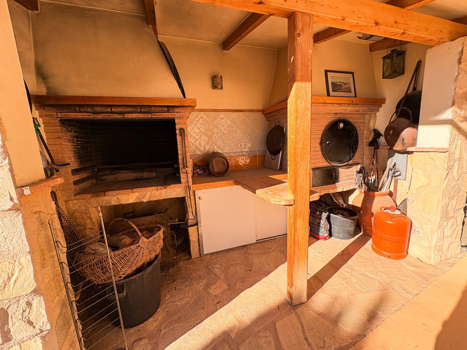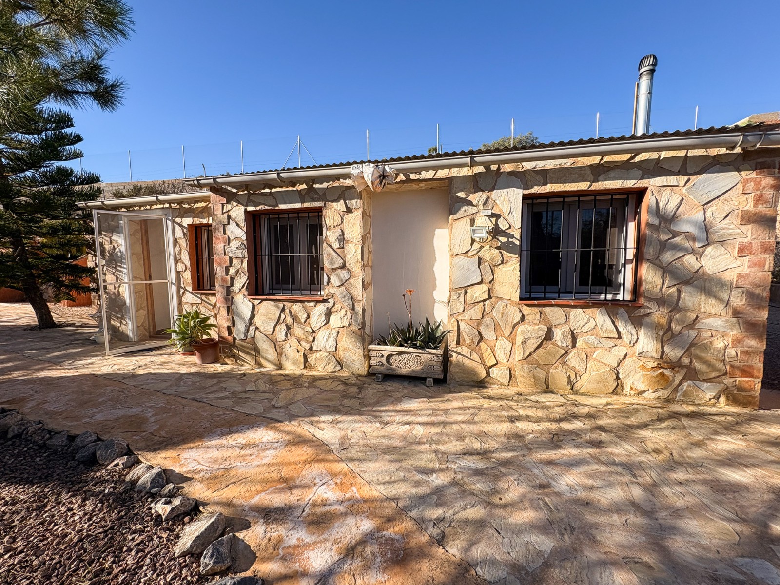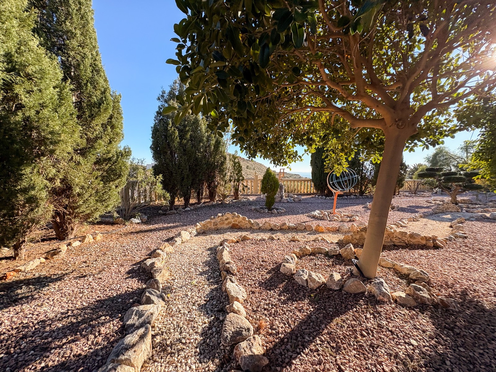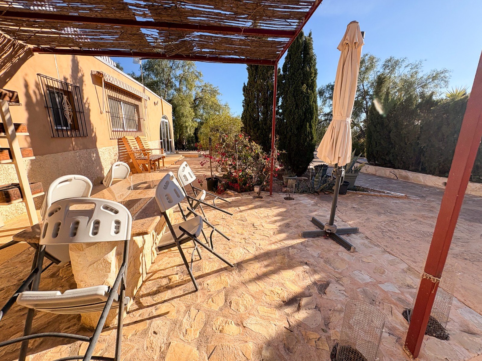 De buitenruimte van de woning is ontworpen voor plezier en zelfvoorziening: een zwembad met een geïsoleerde, intrekbare afdekking en warmtepomp , een jacuzzi voor zes personen , een buitenkeuken , diverse ontspanningsplekken en een goed onderhouden tuin met olijf-, granaatappel-, vijgen- en citroenbomen . Er zijn ook drie verhoogde plantenbakken , ideaal voor het kweken van eigen groenten.