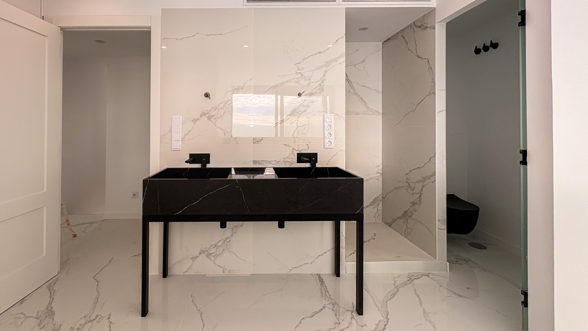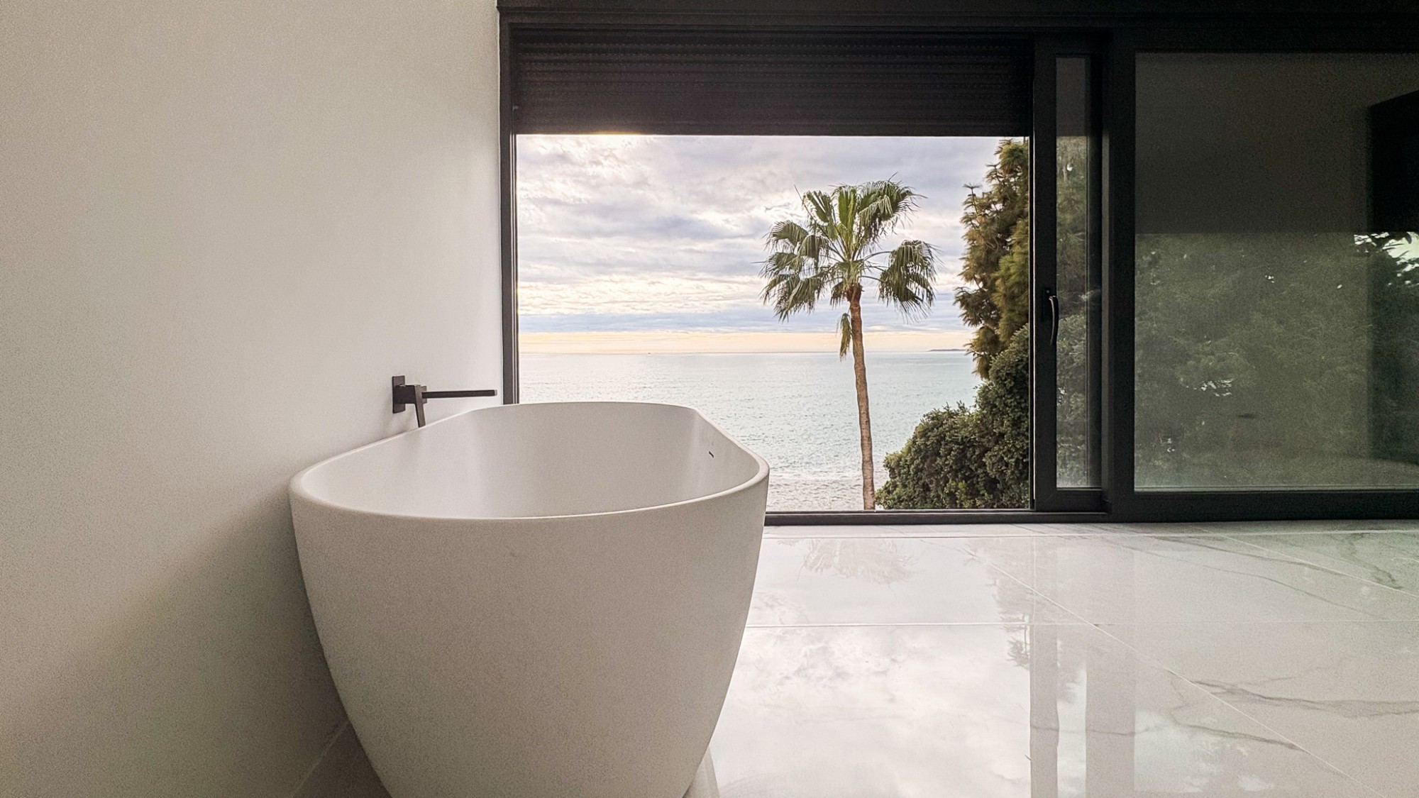 Het exterieurontwerp maakt het mogelijk om moeiteloos en elegant van de omgeving te genieten. Een indrukwekkend terras van 35 m² strekt zich uit over de gehele breedte van het pand en biedt een adembenemend uitzicht op zee. Aan de zijkanten en achterzijde bevinden zich extra ruimtes die geschikt zijn voor meer terrassen. De woning beschikt over een privé, verwarmd zwembad , strategisch gelegen boven de baai, waardoor een unieke harmonie ontstaat tussen de architectuur en het zeegezicht.