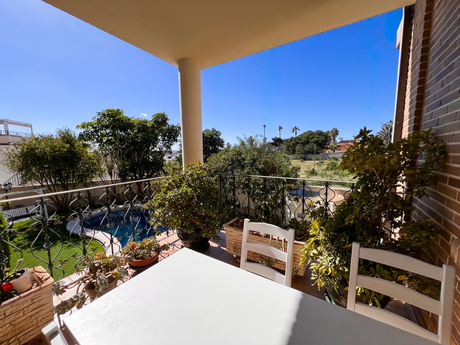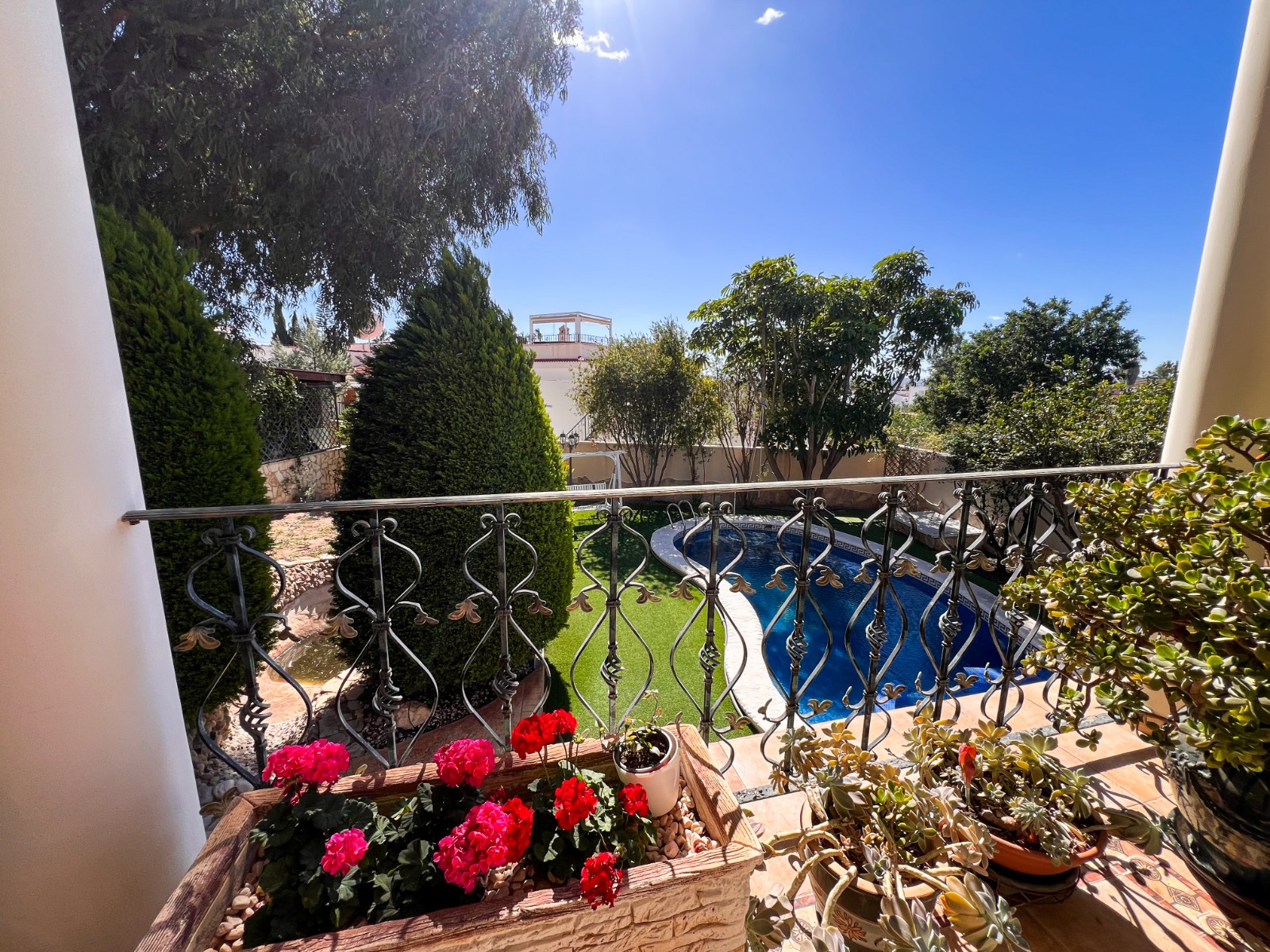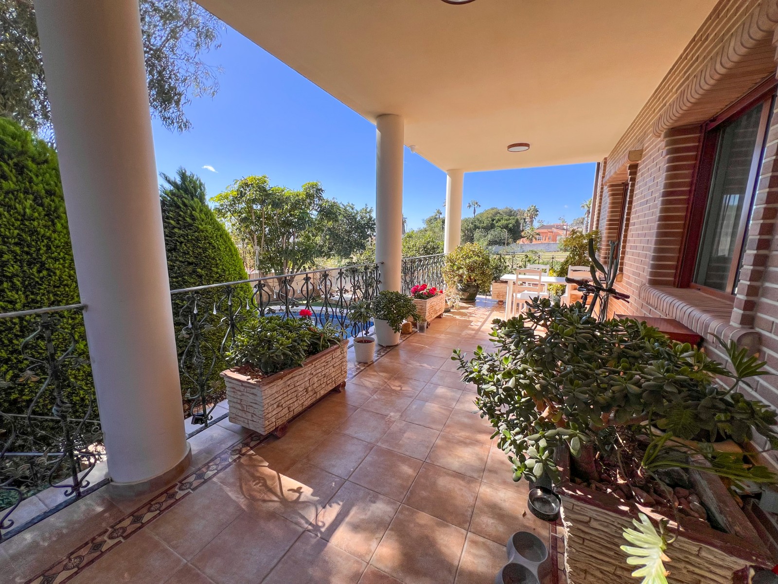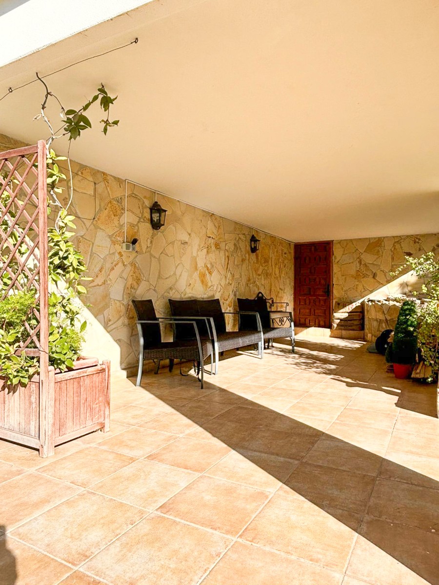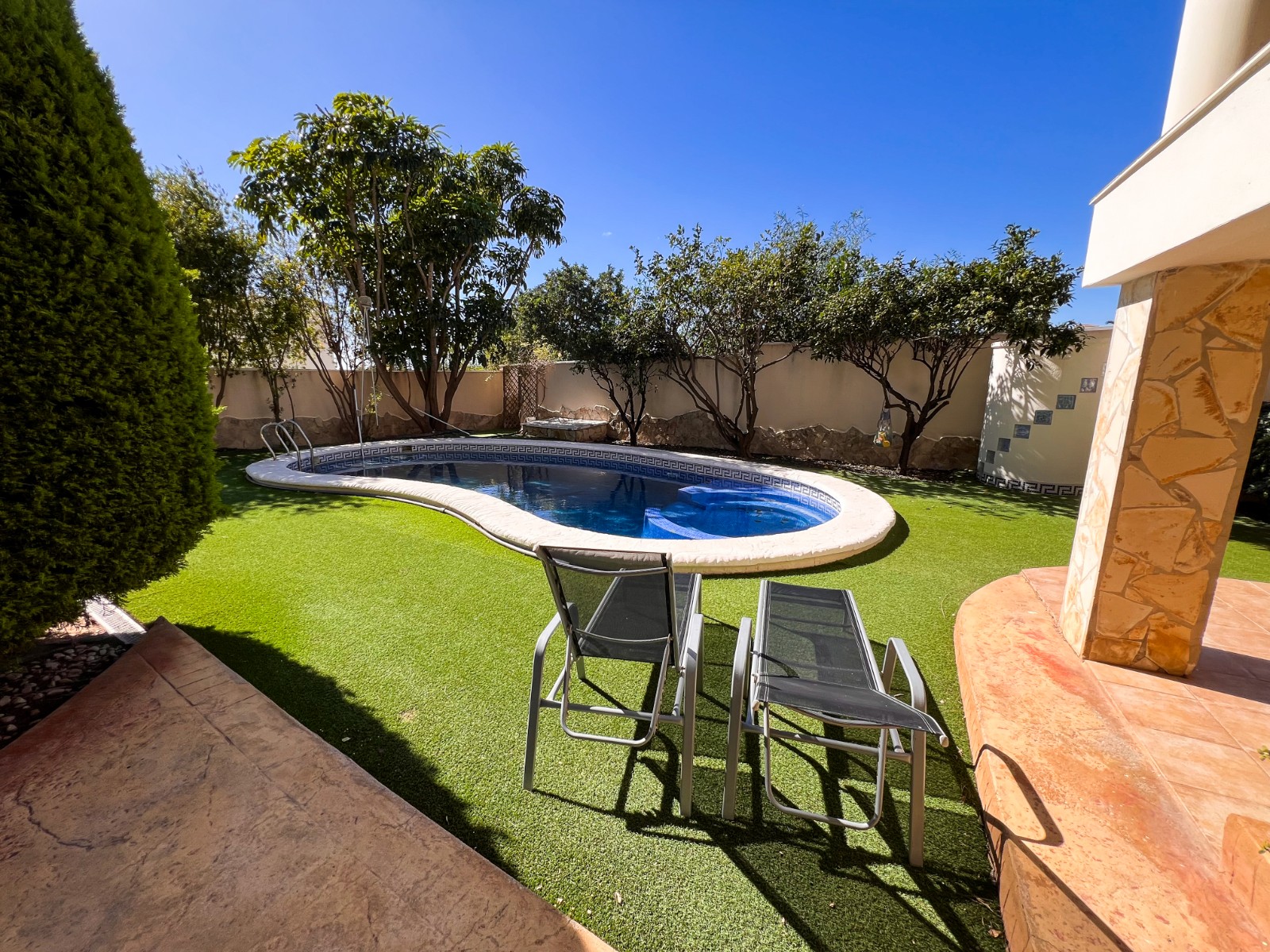 De woning beschikt over een prachtig aangelegde tuin met fruitbomen en sierplanten , een zwembad met jacuzzi en een overdekte parkeerplaats voor twee auto's . De tuin grenst tevens direct aan een groot park een heerlijke groene ruimte, perfect om te wandelen en van de frisse lucht te genieten .