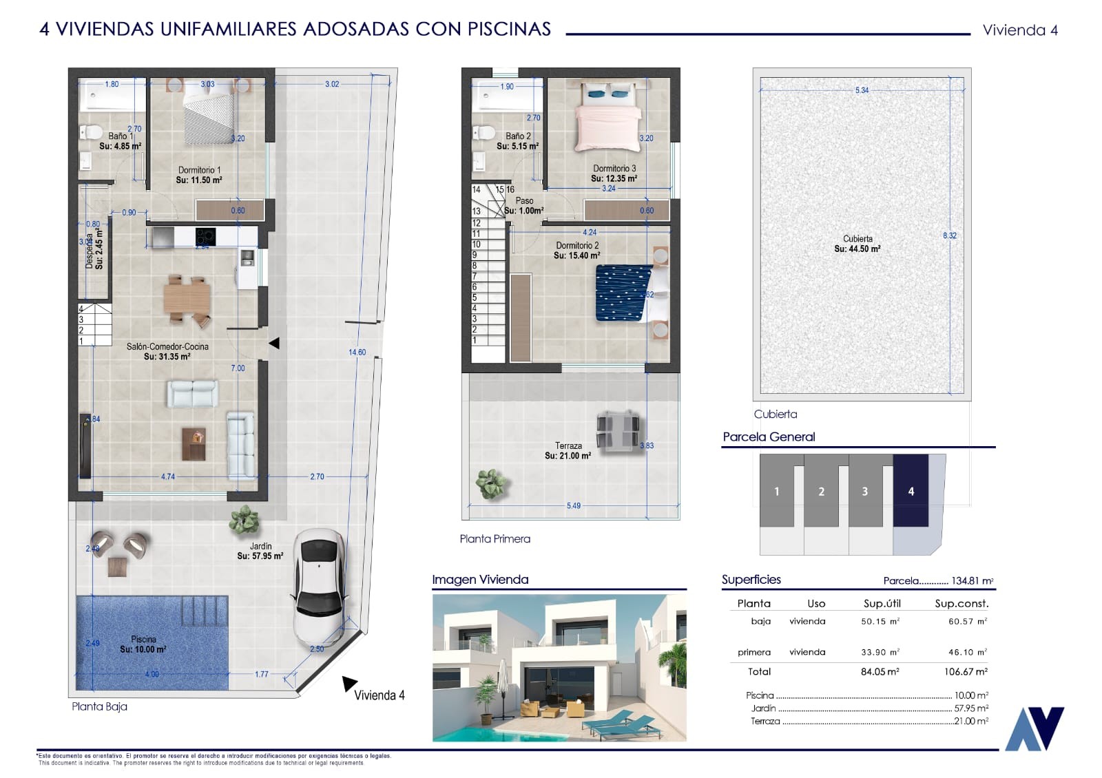 Wij presenteren u deze moderne tussenwoning, gebouwd in 2024, in een rustige woonwijk van San Pedro del Pinatar . De woning biedt 106 m² woonruimte op een hoekperceel van 134 m² , wat garant staat voor veel privacy, overvloedig natuurlijk licht en optimaal gebruik van de buitenruimte.De woning beschikt over een privézwembad , parkeerplaatsen , een overdekt terras , een onderhoudsvriendelijke tuin , een bijkeuken en een provisiekamer . Op de begane grond loopt de volledig uitgeruste open keuken naadloos over in de woon- en eetkamer, waardoor een lichte en functionele ruimte ontstaat. Het huis heeft drie slaapkamers en twee badkamers en biedt optimaal wooncomfort.