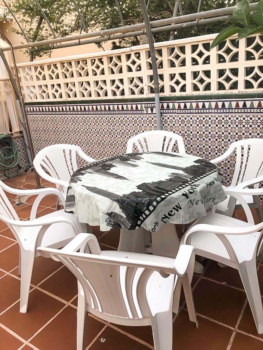 De woning beschikt over een spectaculair terras/tuin van 45 m² met zonnescherm een ideale plek om het hele jaar door te genieten van het mediterrane klimaat, zowel als ontspanningsruimte als als eetgedeelte in de buitenlucht.