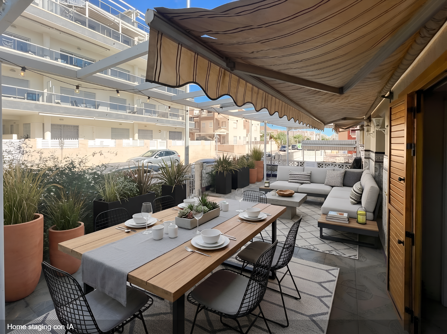 De woning beschikt over een spectaculair terras/tuin van 45 m² met zonnescherm een ideale plek om het hele jaar door te genieten van het mediterrane klimaat, zowel als ontspanningsruimte als als eetgedeelte in de buitenlucht.