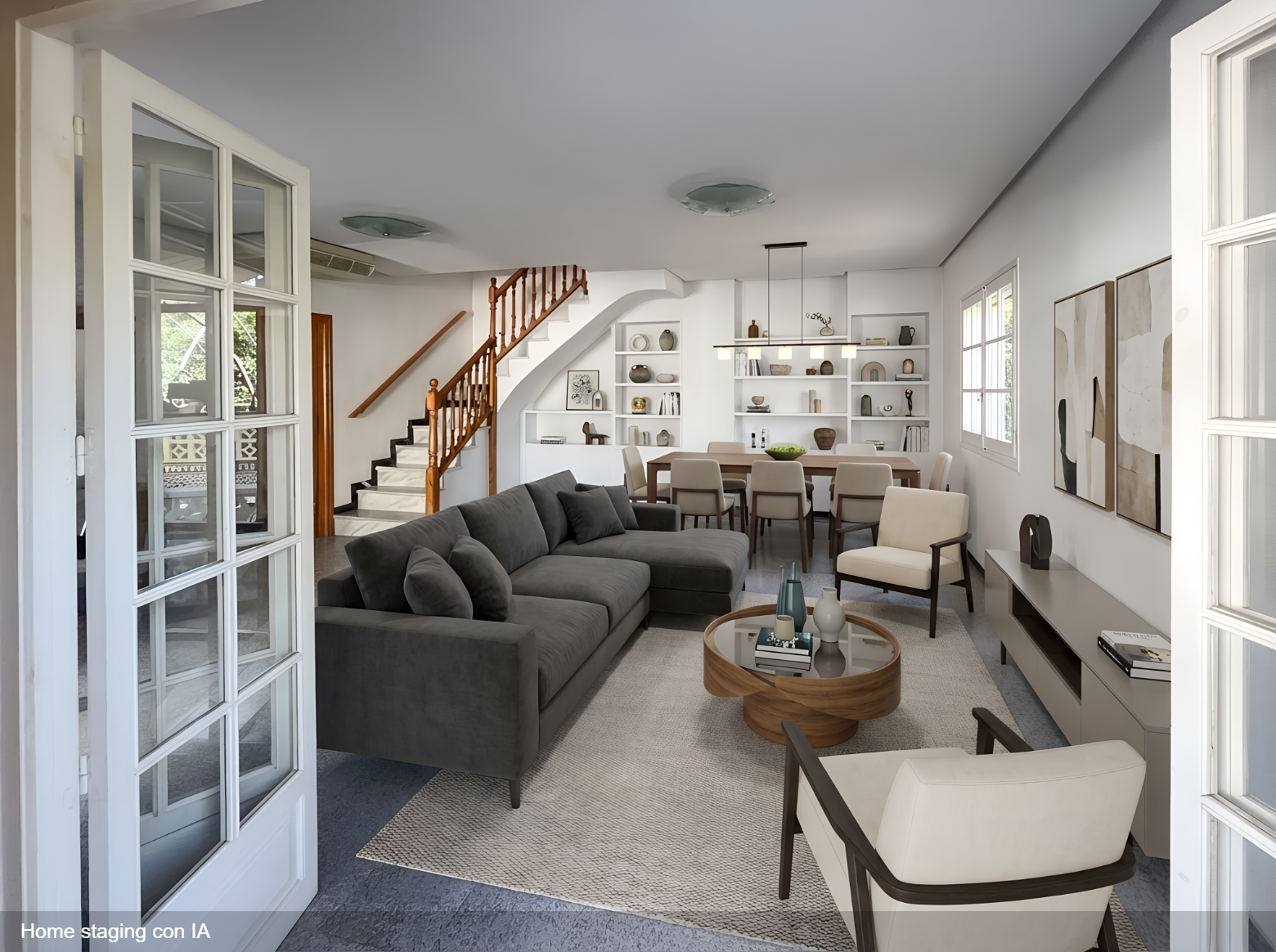 De woningadvertentie combineert echte foto's met door AI gegenereerde afbeeldingen (AI-woningoptimalisatie) om het potentieel van de woning met minimale inspanning te presenteren. De door AI gegenereerde afbeeldingen kunnen fictief meubilair bevatten dat geen deel uitmaakt van de daadwerkelijke inrichting van de woning.
